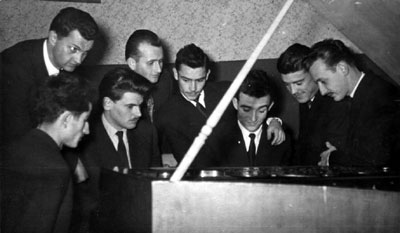 Kosta Janković (prvi sleva) sa Fincem, Karom, Pevcom i drugarima iz Valjevskog džez ansambla