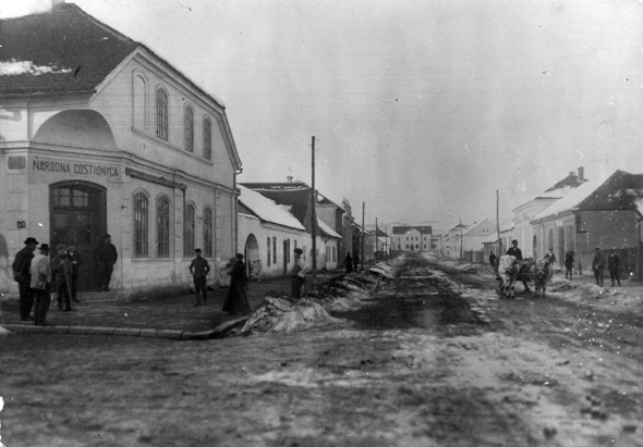 Gostionica na nekadašnjem Sr­eć­ko­vi­ća imanju, ugao današnjih ulica Ka­ra­đo­rđ­eve i Vojvode Mišića, gde je sada Bi­bl­io­teka. Nju je 1888. godine vodio Đorđe Ba­bić Šapčanin.